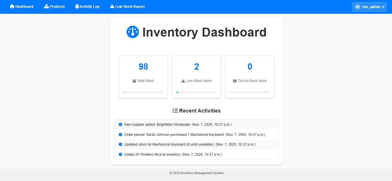 - Manager — Can manage inventory and view system activity.