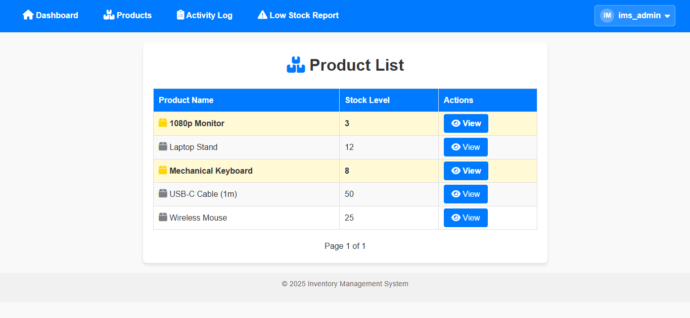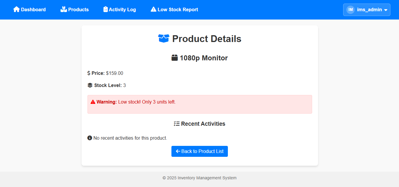 The following screenshots highlight the RBAC enhancement and improved UI components added to the Inventory Management System.