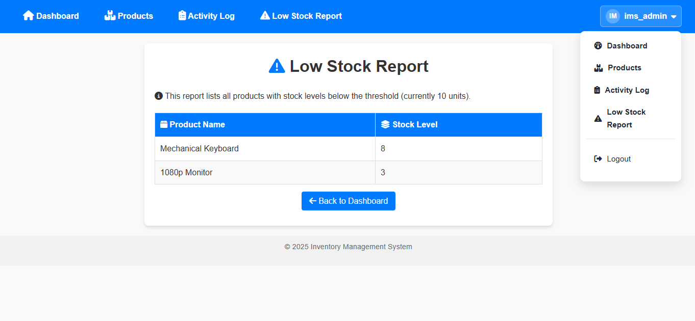 Low Stock Report
