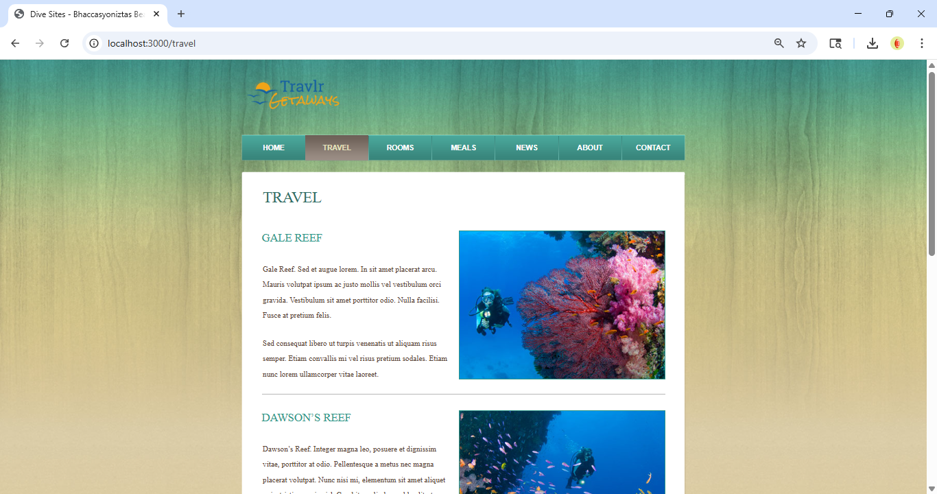 This project was built to practice creating a complete web application, moving from a static site to a full-stack app with a database and API. I started with a provided travel site template and then expanded it by connecting the pages to a database and adding an API layer.