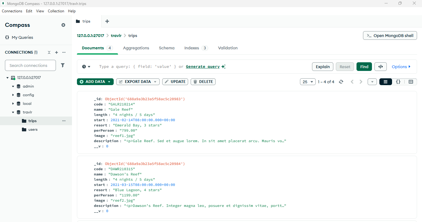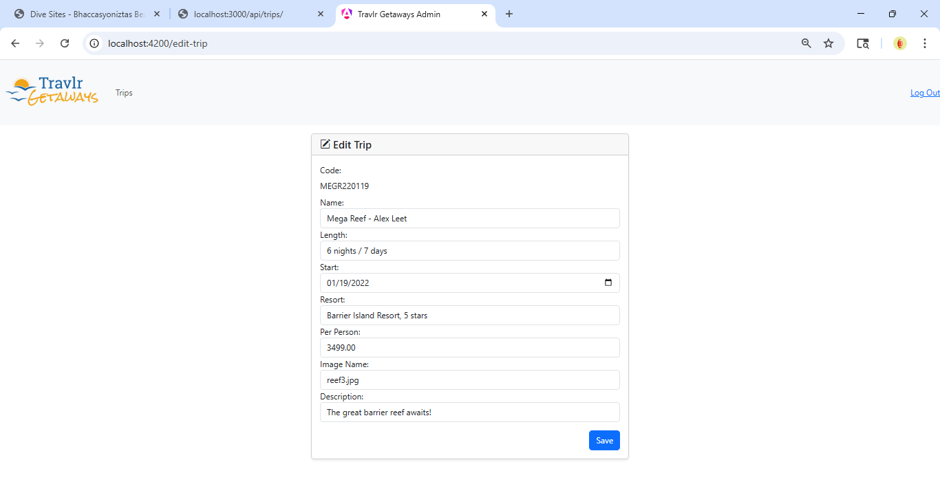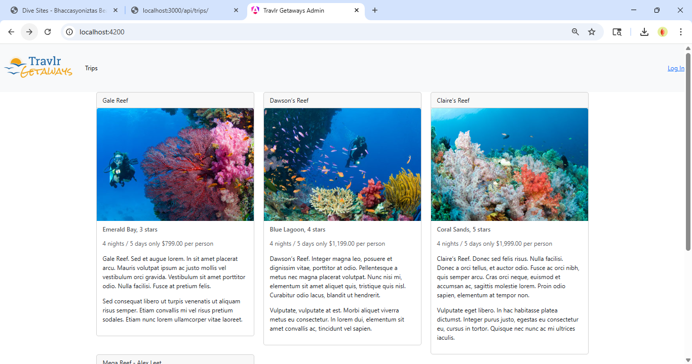The site showcases trip packages that were hypotheticalβcreated only for this projectβbut they served as a practical way to work with listings, details, and updates while learning how to manage data across the full stack.